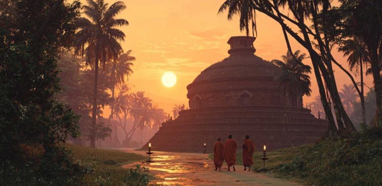 Sappaka’s Journey from Wealth to Wildness A narrative exploration of the monk who found enlightenment by the Ajakaraṇī River, where white herons taught the dharma and storm clouds became teachers Prologue: A Voice from the Stone In the carved chambers…