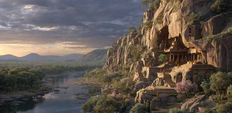 Sappaka’s Journey from Wealth to Wildness A narrative exploration of the monk who found enlightenment by the Ajakaraṇī River, where white herons taught the dharma and storm clouds became teachers Prologue: A Voice from the Stone In the carved chambers…